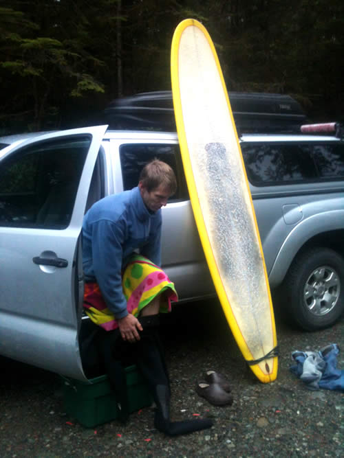 It’s cute when they’re young. They stand next to their gear-stuffed car, ease in and out of their wetsuits, a towel boldly knotted at the waist. But you’re a keeper, remember, so you’re in it for the long run with this guy. There will come a time when the towel needs to be bigger or the knot needs to be looser in order for him to successfully execute the parking lot change. The hopping-on-one-foot-as-I-get-into-my-wetsuit-dance is best done at home, not to mention the enormous, breathless struggle, after his once-a-week-surf, to get it off. Mention it to your boy over a Craft Beer. It will go down more smoothly.