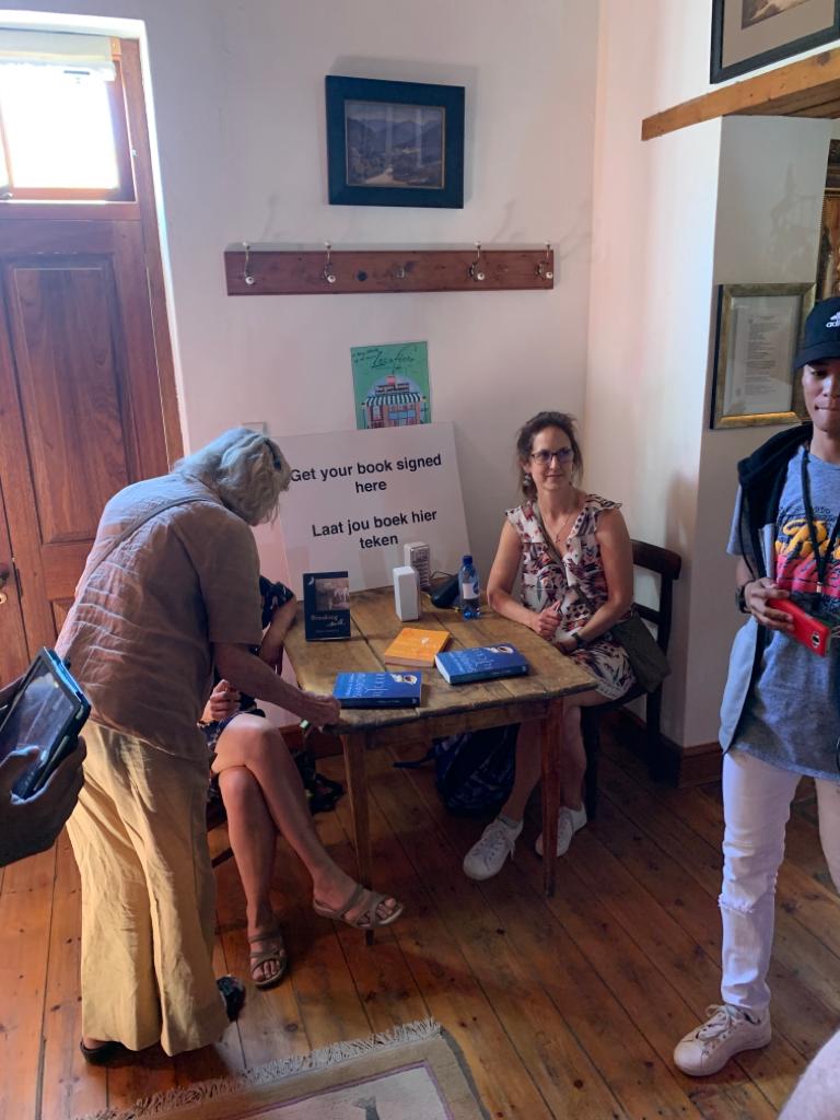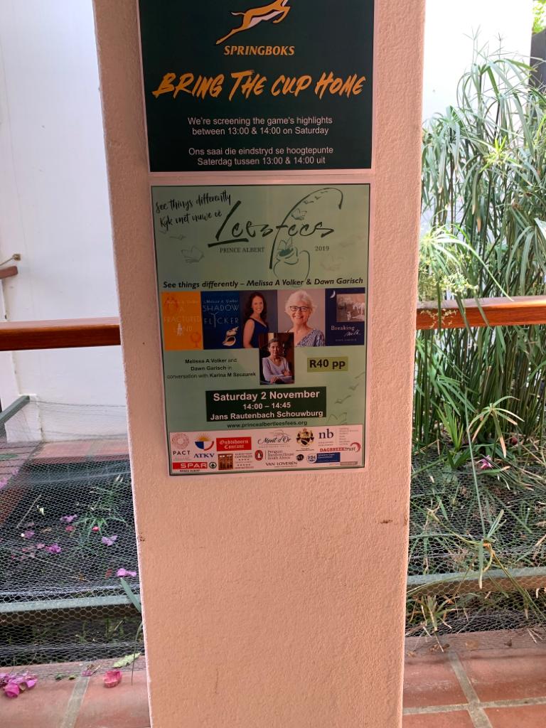 Then there was the excitement of Siya and the Springboks, we watched in the Swartberg Hotel bar and after that (and a Panado for a stress headache) it was time for our our panel discussion at the Leesfees. We met so many people with an interest in renewable energy and windfarms. Huge thank you to the organisers for including us and the wonderful company of my fellow writers, Dawn Garisch, Helen Moffett and Karina Szczurek.
